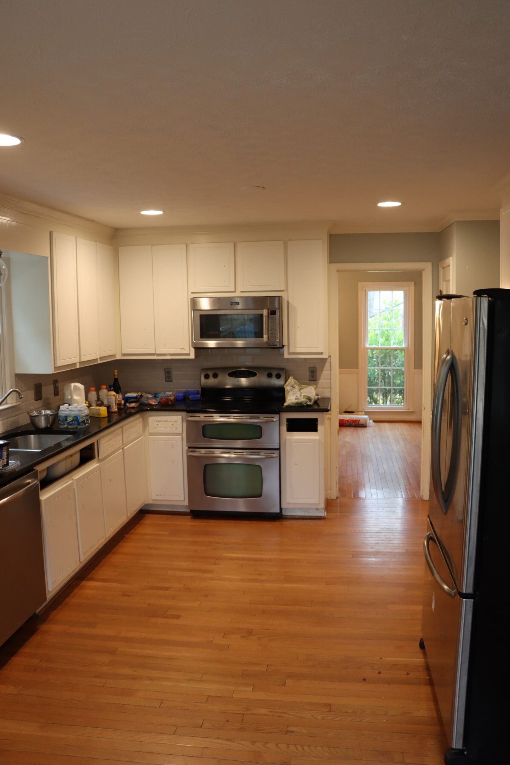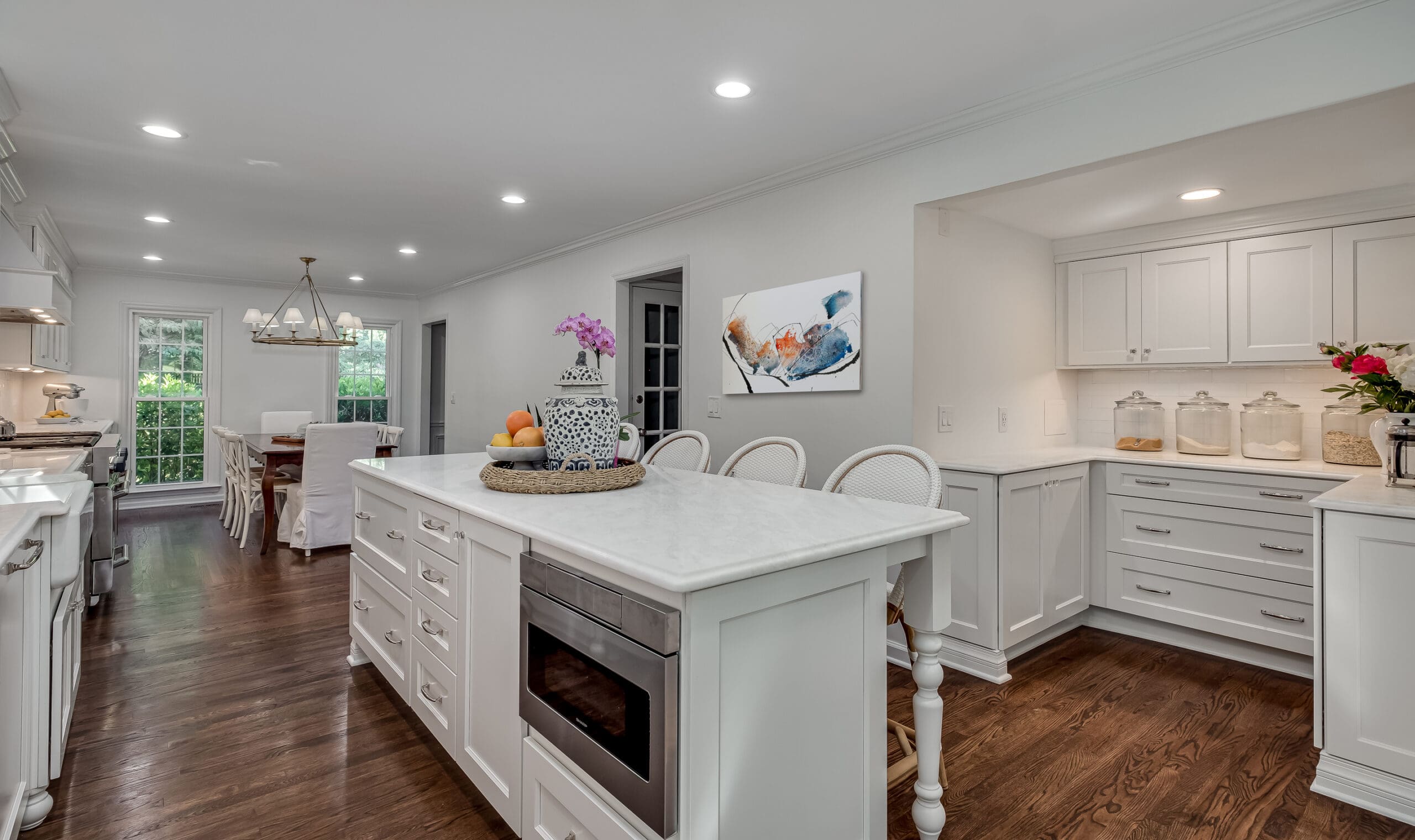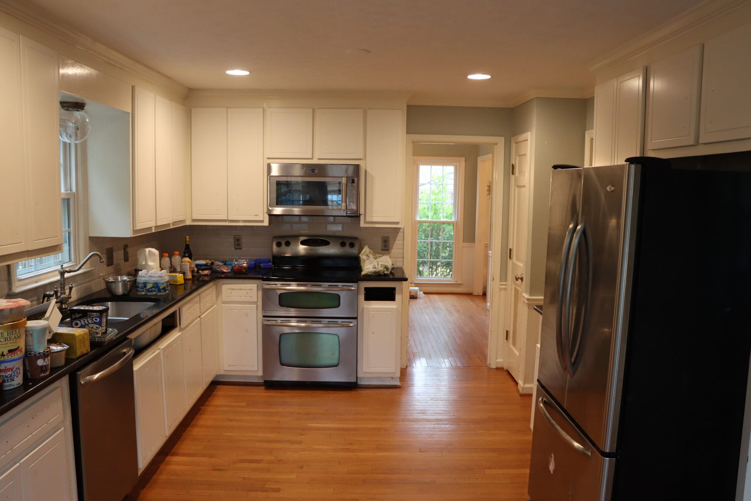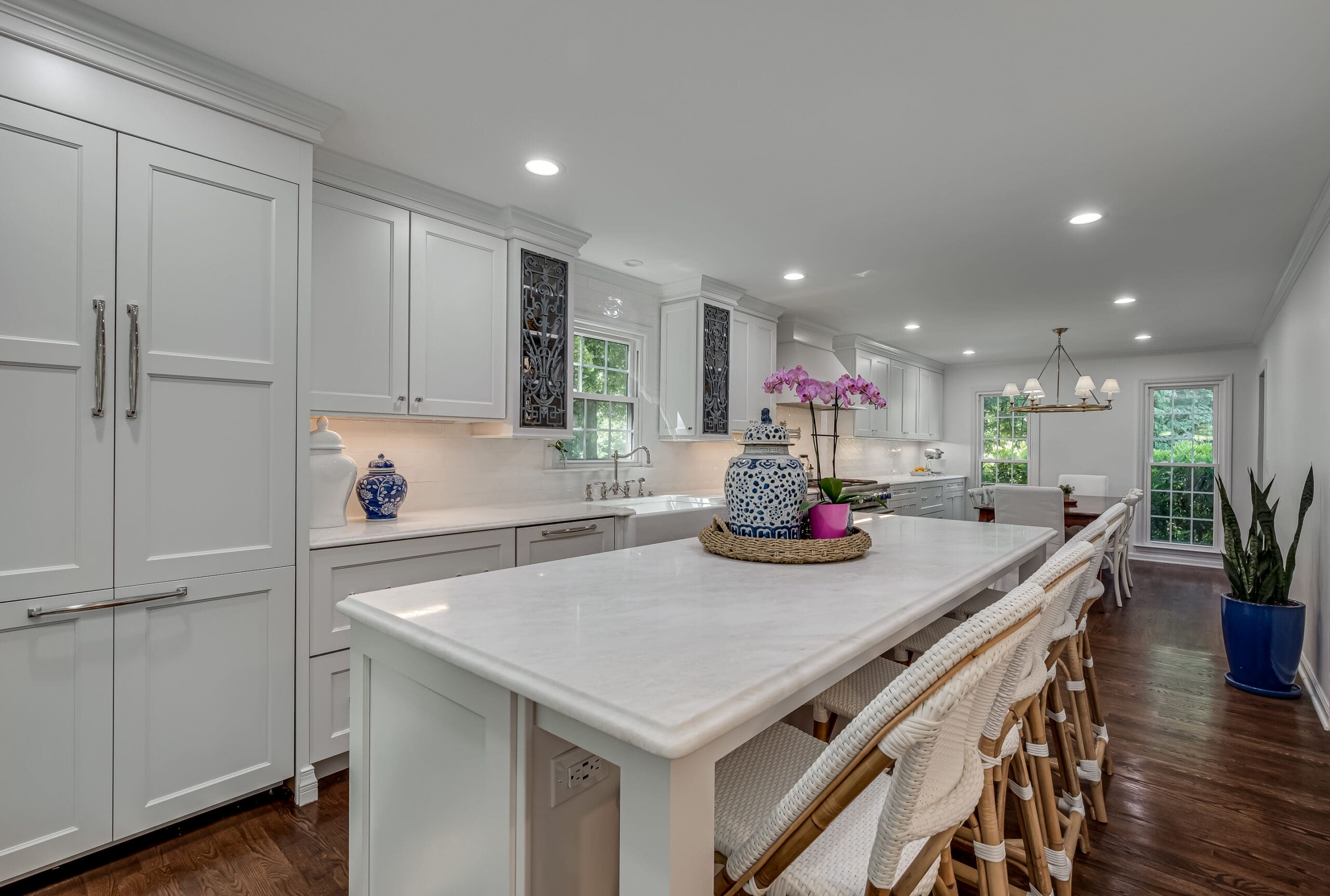- Added a farmhouse sink + designer fixtures as the perfect “jewelry” to the all-white cabinetry