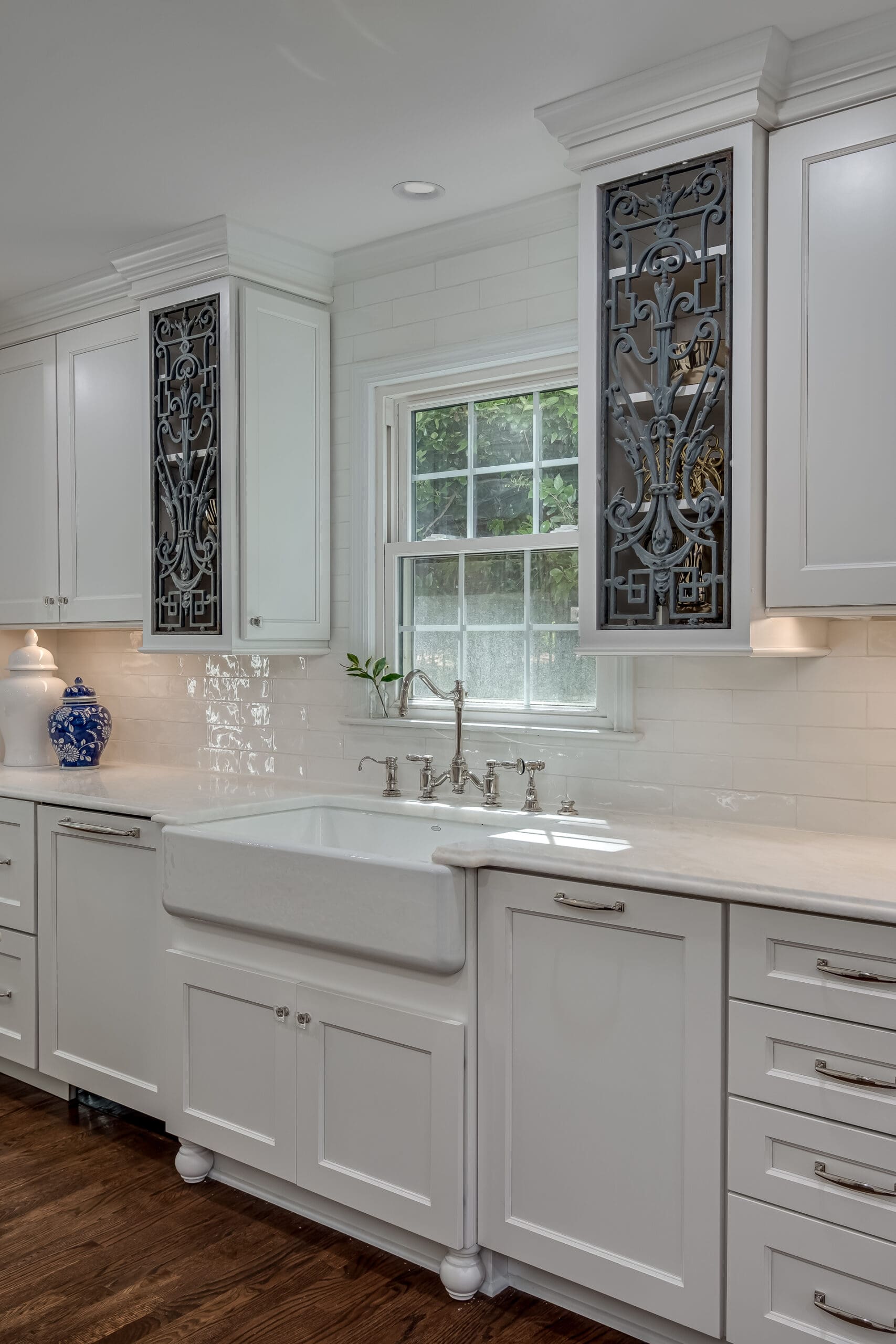 - Repurposed antique wrought iron grates into custom cabinet doors—honoring the family’s sentimental history